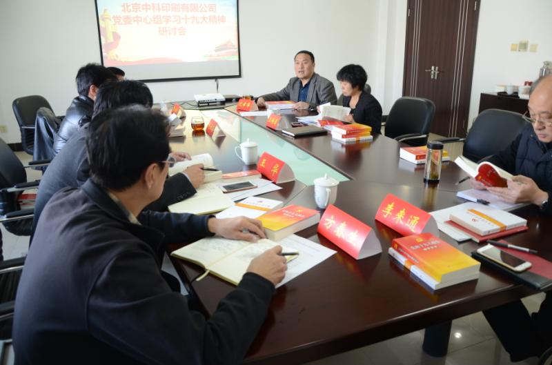 11月22日,北京中科印刷有限公司召开党委中心组学习研讨会,学习研讨十九大报告和党章,学习习近平总书记在党的十九届一中全会上的重要讲话精神,研究部署贯彻落实工作。党委书记、董事长沈幸华主持会议,公司党委委员、纪委委员参加会议。 会上,沈幸华结合公司实际提出公司上下要切实把思想和行动统一到十九大的战略...
