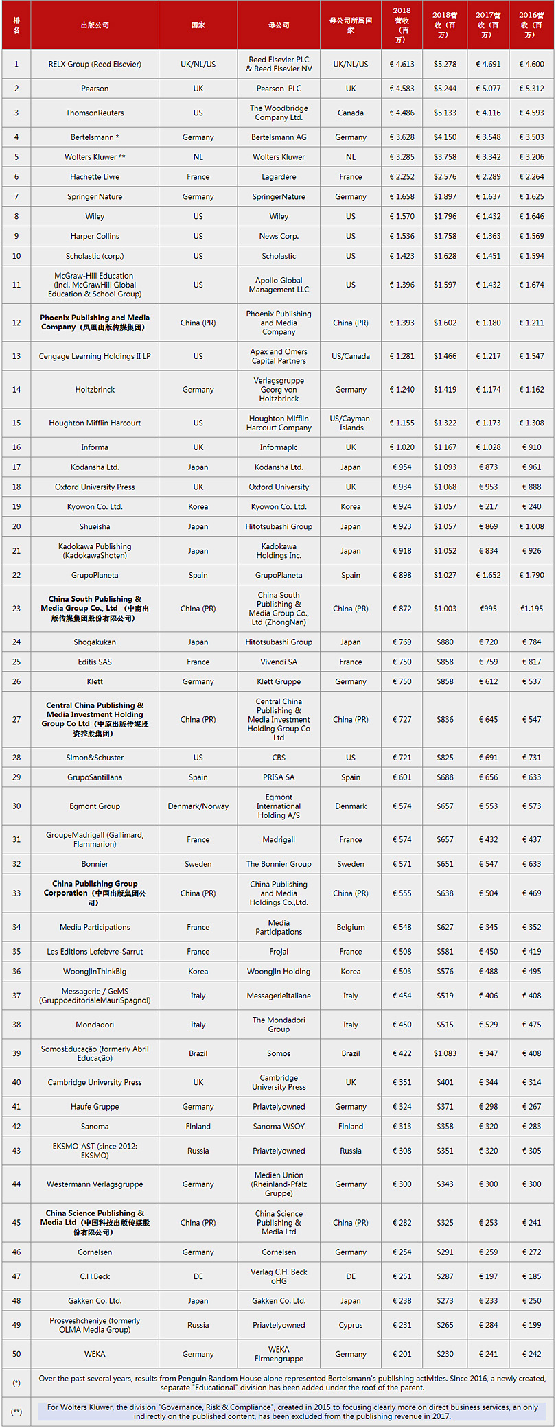 近日,2019年全球出版50强最新榜单发布,中国科技出版传媒股份有限公司首次入围“全球出版50强”,位列第45位。 “全球出版50强”排名相当于世界出版行业的“财富50强”,自2007年开始首次发布,之后每年更新?!叭虺霭?0强排名”由法国出版杂志《图书周刊》(Livres Hebdo)发起,由RWCC国际书业研究院(Ruedige...
