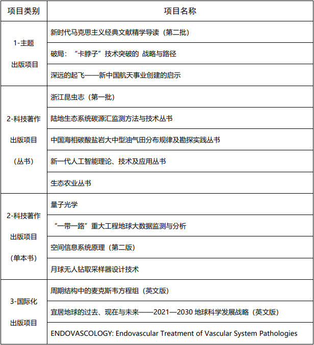 2021年度中国科技出版传媒集团出版基金资助项目评审结果公示